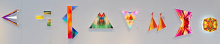 This installation was 4'H x 25'W. I created seven of these new for the show. I curated so that the eye moved in from the left or the right and centered in the middle. The overall show had 18 Geometric Illuminations and 2 Mobiles.
